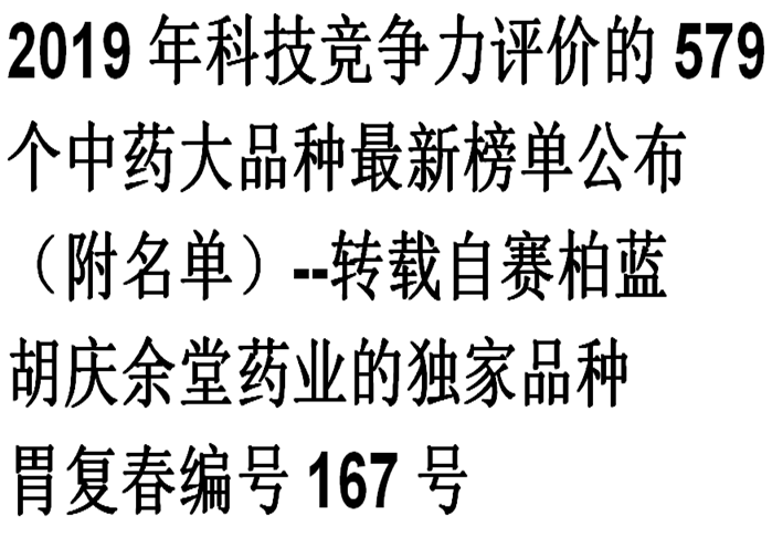 2019年科技竞争力评价的579个中药大品种最新榜单公布(附名单)--转载自赛柏蓝(beats365药业的独家品种胃复…